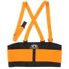 Hi-Vis Back Support ? Standard Weight. All elastic 8-inch body for extra firm support.?Hi-Vis spandex elastic with neoprene body.?Breathable mesh on the lumbar pad position.?Non-conductive polypropylene stays with anti-slip elastic.?Adjustable, detachable suspenders.?Stretchable bias binding with zig-zag stitching.?Color: Hi-Vis Orange/Black?