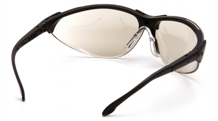 Crafted from high grade polycarbonate, machined from virgin materials and formed to shape. Align the angle of the lens to the proper position for your work application with ratcheting lens pitch adjustment. Lens/frame design allows air to flow freely up and away from lens to prevent fogging. Temples adjust to four different lengths. Adjustable nose pad conforms to a broad range of bridge sizes. Clip and tension mounted 9.5 base curved lens eliminates screws or rivets for quick and easy lens replacement. Provides 99% UV protection.