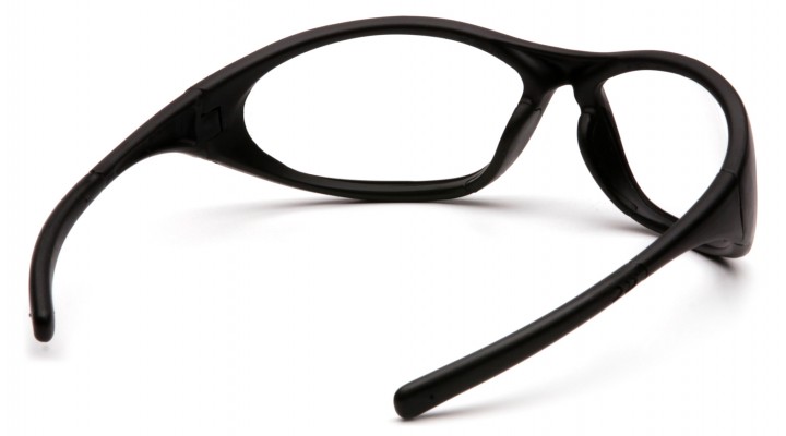 Straight back, rubber coated temple tips. Built in nose pads elevate frame for precision fit and weightless wear. Lenses filter 99% of harmful UV rays.
